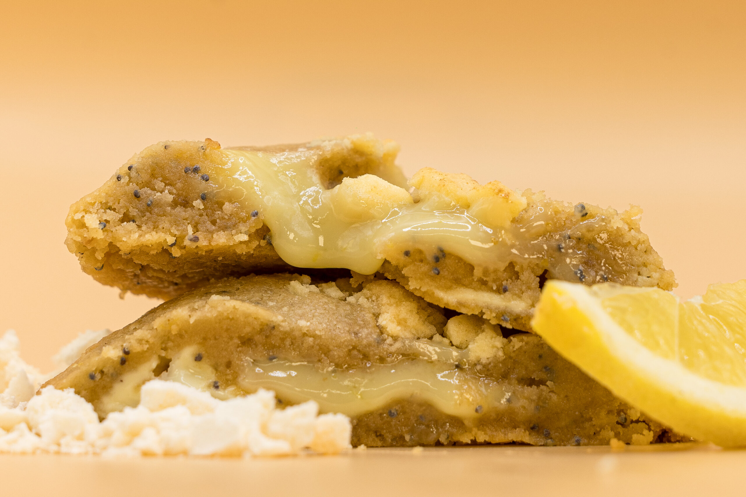 Beurre Baechler (47) (LAIT), Farine (GLUTEN), Chocolat blanc 30% (LAIT), Sucre roux, Sucre blanc, Beurre de cacahuètes (ARACHIDES), Citron, Oeufs Plein Air (OEUFS), Vanille, Graine de Pavot, Meringue (OEUFS), Sel, Levure chimique, Bicarbonate alimentaire.