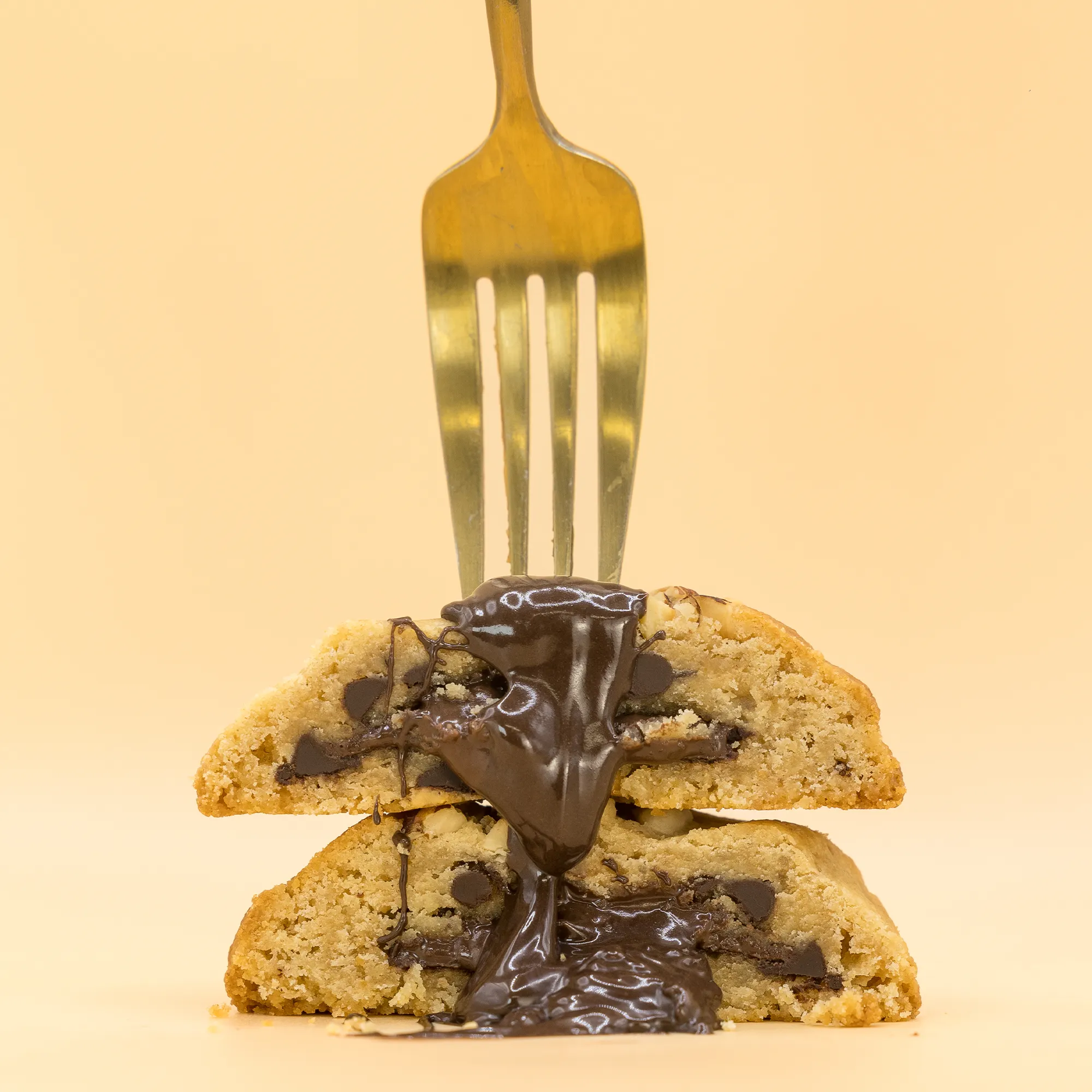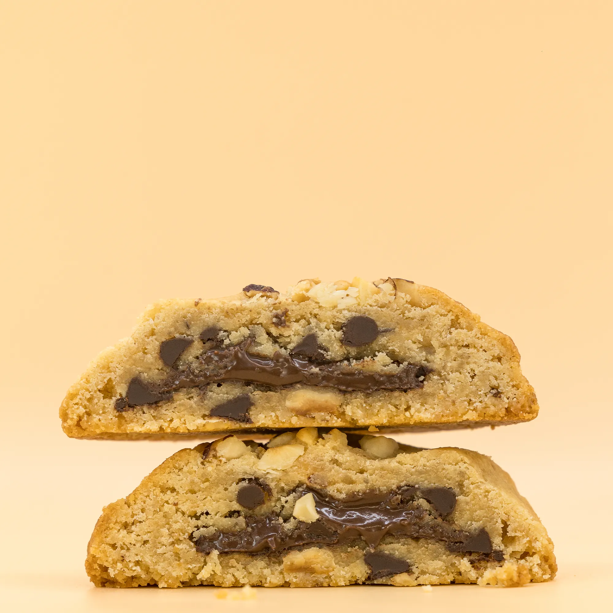 Cookie aux noisettes torréfiées, pépites de chocolat et coeur fondant au Nutella.