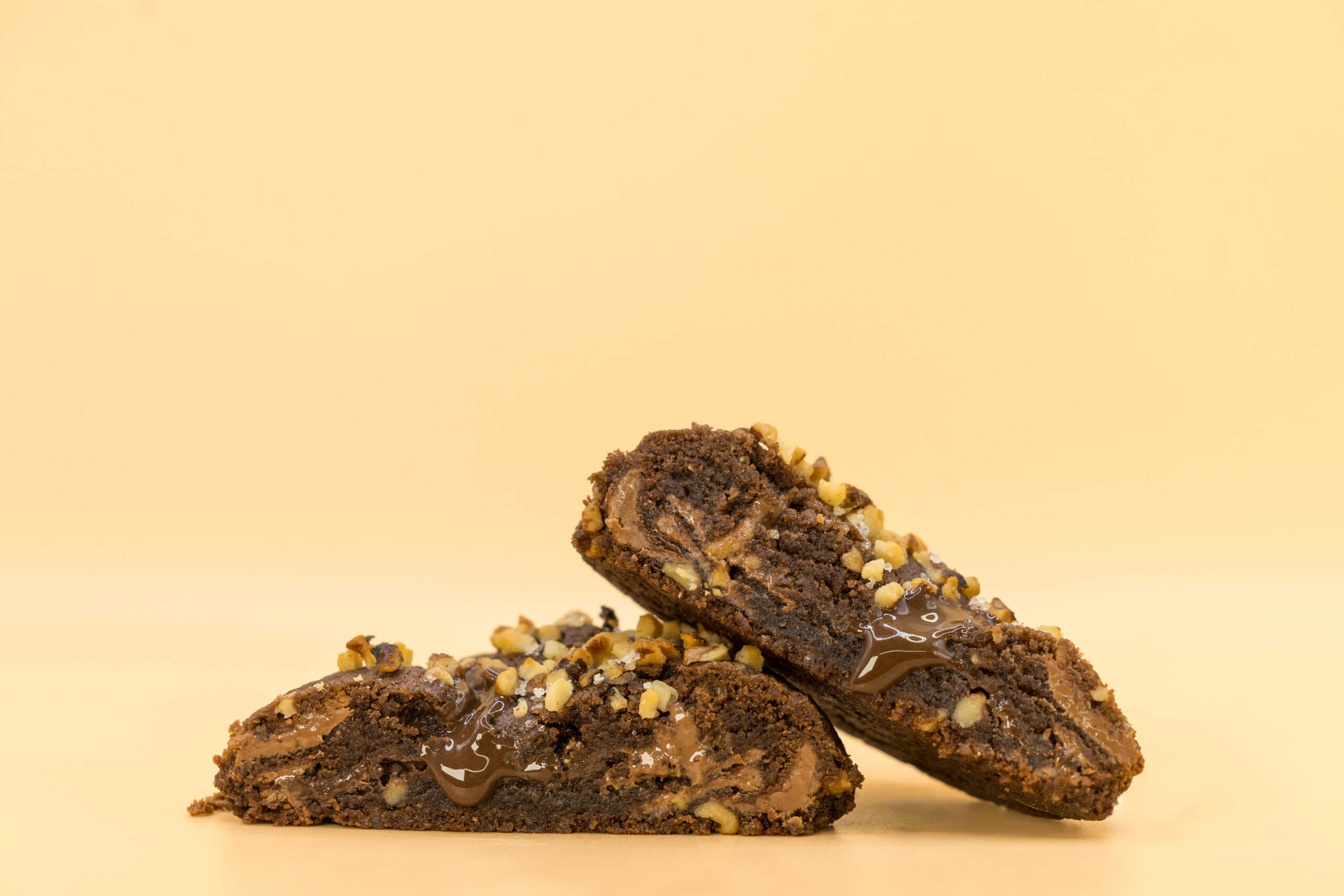 Ingrédients : Beurre Fromagerie Baechler 47 (LAIT), Farine (GLUTEN), Chocolat au lait 30% (LAIT), Sucre roux, Noix (FRUITS À COQUES), Beurre de cacahuètes (ARACHIDES), Sucre blanc, Huile de tournesol, Vanille, Cacao non sucré, Sel, Levure chimique, Bicarbonate.